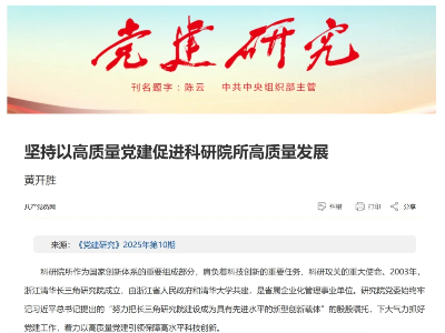 从探索实践到示范样本——中组部《党建研究》权威杂志系统介绍浙江清华长三角研究院党建工作经验