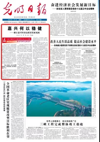 11月2日,《光明日报》头版头条刊发《嘉兴何以稳健——浙江嘉兴经济高质量发展见闻》一文。文章聚焦了我院在服务嘉兴经济高质量发展的一些做法和实践。研究院一方面通过产学研合作,加快推动传统企业转型升级;一方面孵化高科技企业,提高企业核心竞争力,推动嘉兴经济高质量发展。原文如下: